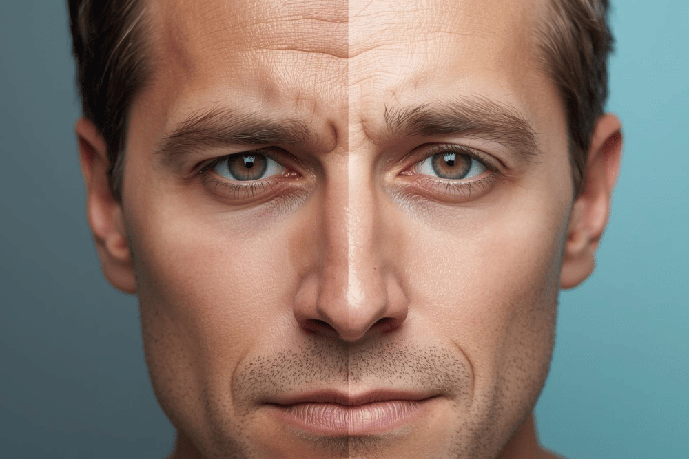 The Goal: Prevent severe expression lines. Just like in Blog 5, preventing the winter “squint” is crucial. Targeting the frown lines ensures you project calmness and authority, not perpetual stress. Treatments are precise, ensuring strong male expression remains intact while reducing the lines that age the face.